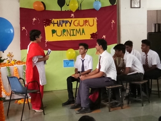 The Head boy Krishna Nagarkar gave a welcome speech followed by Ganesh vandana by Manjiri Godke. Mugdha Pendse of std XII gave a small speech explaining the importance of gurupurnima. The students performed a small skit showing how a teacher touches one’s life and leads the youth to a bright future, after which the students presented a sweet poem on all the teachers.
