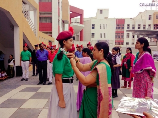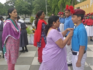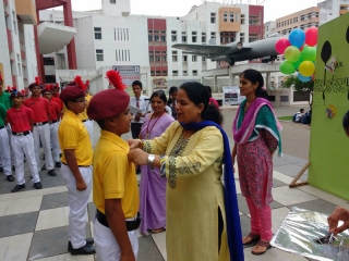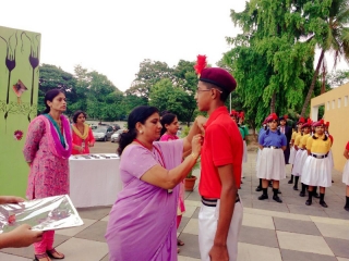 The program started with the singing of the school song. The gathering was then addressed by Hon. Supervisor Mrs. Rao, who briefed the new Student Council about their duties and responsibilities. After her motivating speech the programme proceeded further with the pining up of badges. The Chief Guest for Hon. Principal, Supervisor and House Masters handed over the badges to the Head Boy, Head Girl, Prefects, Vice-Prefects and Activity Prefects who were eagerly waiting to take up their duties. This was followed by oath taking ceremony of the Student Council. The Head Girl, Ms. Shivani Gawade, lead the oath taking ceremony followed by the new Student Council who took the pledge of just decisions, good management skills and impartiality while discharging their duties.