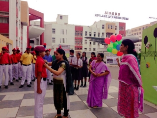 The Head Boy, Master. Krushna Nagarkar, on behalf of the new Student Council expressed his gratitude for the honour bestowed upon them and pledged to discharge their duties sincerely. The gathering was then addressed by Hon Principal, Ms. Shivali Jagtap, who narrated a story on the importance of discharging the duties sincerely. The Head Boy, head Girl and School Prefect released the balloons representing different House colours for Shahaji, Shivaji, Sambhaji and Rajaram House hoping that each house takes effort to touch the sky of success. It was an inspiring, motivating experience for the students of Std. V to XII who witnessed this grand occasion with joy and fervour. The function concluded with the vote of thanks and national anthem.