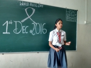 Students of SSPM Day School & Jr. College observed World Aids Day on 1st December 2016. It was an effort to make the students aware about the dangerous disease Aids. Shrusti Parandwal from Std XII A prepared PPT on Aids for HSC students. Lecture on Aids was delivered by Mrs Salunke through which she created awareness amongst the students to take precautionary measures to prevent the disease. The lecture also enabled the students to understand the ill effects of Aids. The lecture ended with interactive session of Question & Answers.