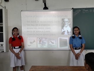 20th June is Death anniversary of famous Ornithologist and Naturalist Dr. Salim Ali.His life and work done in the research and study of birds is inspiring. So three groups of Std X students prepared presented Power Point Presentation on Dr. Salim Ali and his work in the classes of Std VIII & IX . Documentary explaining great work done by Dr. Ali in the development of ornithology was also shown. In the end students were appealed not to harm and protect the birds. Students of Std VIII also prepared wall hangings on birds.