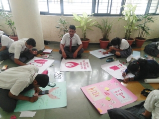 Interhouse poster making competition for junior college was organised on 19thjune 2018, for which the theme was ‘Blood Donation’. It was organised to make students aware about the importance of donating blood in order to ensure the availability of blood for patients in need across the world.