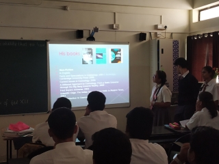 The students from class XIIB Ashutosh Potdar, Gauri Gurav and Neha Jadhav gave interesting information with coloured slides and videos on life history of Neil Armstrong and his important role in Apollo 11 mission. Students of class XII found it very informative and they enjoyed it.