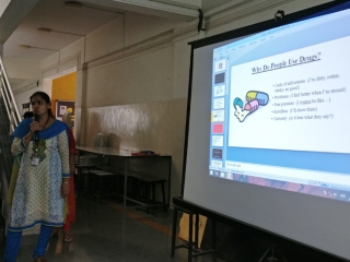 Drug addiction is deteriorating the health of young generation, the awareness among teenage students is important. A Powerpoint Presentation was arranged by Mrs. VaishaliPophale, Mr. SachinKarkande. The students of std IX, X and XII attended the presentation. It included videos on drug addiction and its effects and the ways of prevention of drug addiction.