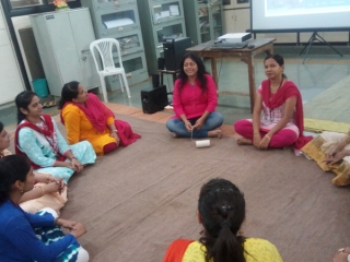 The initial two sessions focused on the art of storytelling and its value in education, the challenges faced by teachers today and use of creative tools, music and art in everyday teaching. Teachers were involved in chart making and collage making activities. Also a story weave/ story thread activity was conducted, whereby teachers shared a chapter or anecdote from their personal lives. It taught the value of connecting, bonding and communicating through the universal language of emotions.