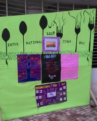 The students did various body postures or asanas like Tadasana , Suryanamaskar ,Vrikshasana , Vastrasana ,Padhastana ,Garudasan , Tolasana, Badha padmasana , Paravtasan, Matsyasana, Paschimottasana, Akarna Dhanurasana, Viparit Karni ,Halasan, Shirshasan, etc. The students also made charts of yoga very beautifully as well as the anchoring was done by the students of Std 9th & Std 10th . The participants did excellent and sharp body posture and the asanas. Students took the oath to maintain their bodies fit and to keep smart personalities.
